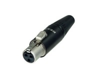 3-х пиновый кабельный разъём miniXLR "мама". Позолоченный контакты. Повышенная защита от электромагнитного излучения. В комплекте две цанги для фиксации кабелей разных диаметров.